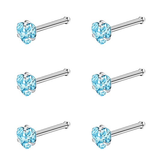6Pcs/Set 20G Heart Nose Piercing Nose Bone Stud CZ Nostril Piercing