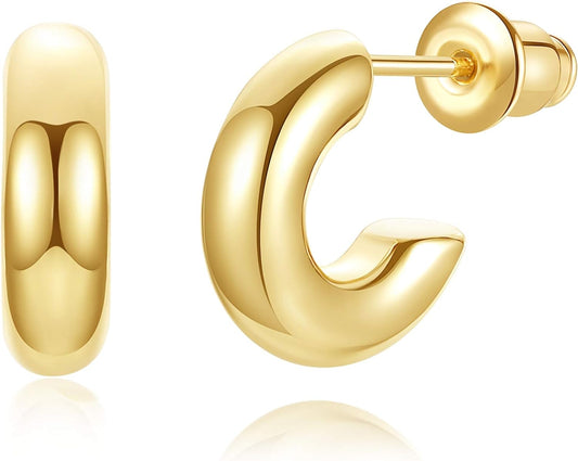 Small Gold Hoop Earrings for Women Chunky Mini Thick Gold Hoops 14K Plated Gift
