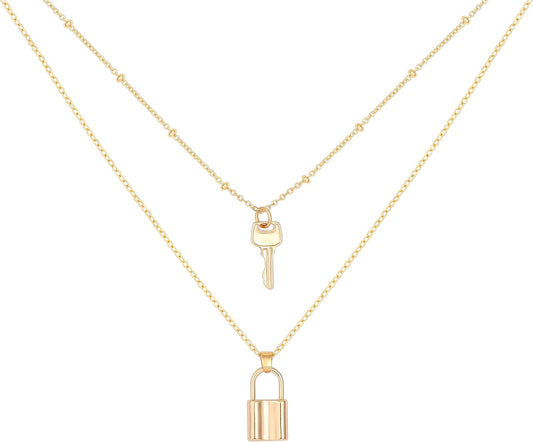 Heart Chain Necklace with Key & Heart Lock Pendant - Adjustable Gold, Silver, or Black Design