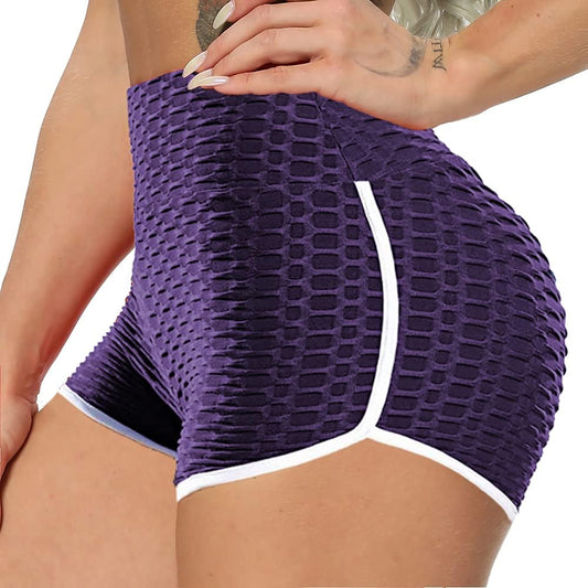 Women'S Workout Booty Scrunch Butt Lifting Yoga High Waist Sports Textured Legging anti Cellulite Shorts, A-Y-Dolphin Textured Purple, Medium