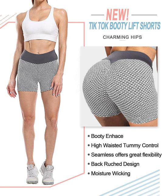 Women Tiktok Booty Shorts Butt Lifting High Waist Tummy Control Workout Running Gym Textured Ruched Shorts Gray